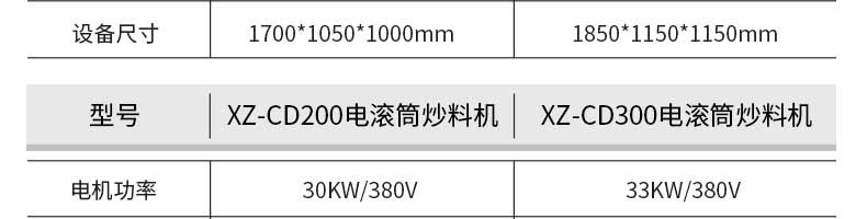 名稱電加熱滾筒式炒料機(jī) 電源 功率30kw/380v 產(chǎn)量50-150kg/h 尺寸具體看下面參數(shù) 重量300/350kg 規(guī)格 其他