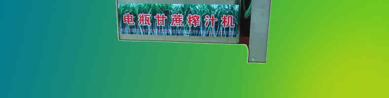 電瓶式甘庶汁機(jī),采用全不銹鋼外殼,外形美觀,榨汁滾輪,機(jī)頭部件都經(jīng)過嚴(yán)格的防銹仿腐蝕處理,保證蔗汁符合衛(wèi)生標(biāo)準(zhǔn),適合賓館、卡拉OK廳、水果店、冷飲店、涼茶店、車站、超市等服務(wù)行業(yè)壓榨各種甘蔗之用。
