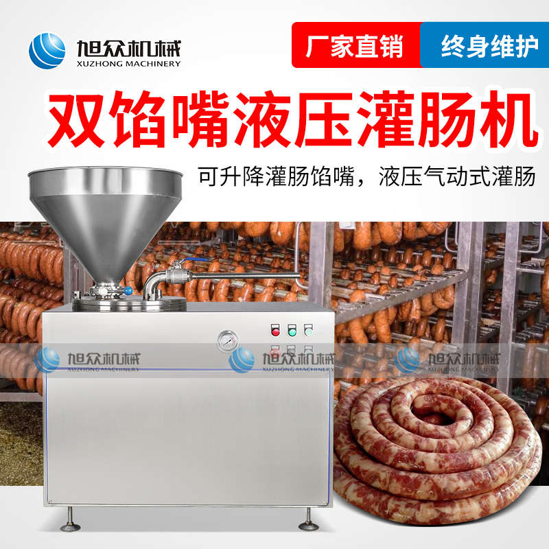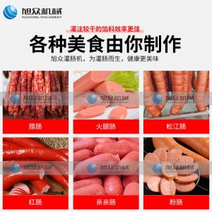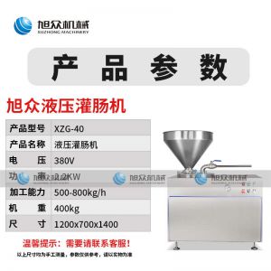 XZG-40液壓灌腸機(jī),液壓灌腸機(jī),可升降灌腸餡管,液壓氣動(dòng)式灌腸。灌注較干的餡料效率更佳,各種美食由你制作。旭眾灌腸機(jī),為灌腸而生,健康更美味。