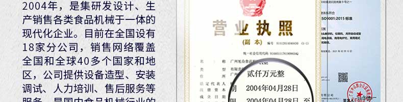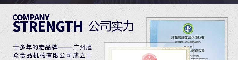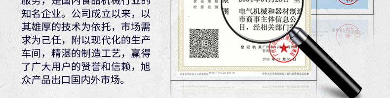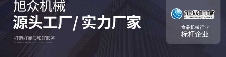 廣州旭眾食品機(jī)械有限公司是一家集科研開發(fā),生產(chǎn)設(shè)計(jì),營銷服務(wù)為一體的現(xiàn)代化生產(chǎn)企業(yè)?,F(xiàn)代化生產(chǎn)車間,精湛制造技術(shù),所產(chǎn)機(jī)械歷經(jīng)市場(chǎng)重重考驗(yàn),不斷贏得海內(nèi)外客戶的贊譽(yù)。