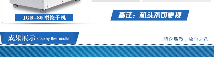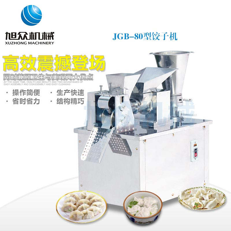 JGB-80型號餃子機,本機是一款可生產各種肉餡、肉菜混合餡、全菜餡及其他種餡餃子的設備。包制出來的餃子可蒸、煮、炸、煎等多種調理。適用于賓館、飯店、餐廳、團體食堂加工,幼兒園、速凍餃子生產。