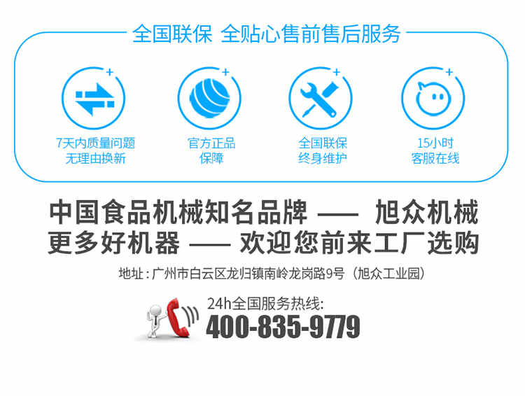 廣州旭眾食品機械有限公司是一家集科研開發(fā),生產(chǎn)設(shè)計,營銷服務(wù)為一體的現(xiàn)代化生產(chǎn)企業(yè)?,F(xiàn)代化生產(chǎn)車間,精湛制造技術(shù),所產(chǎn)機械歷經(jīng)市場重重考驗,不斷贏得海內(nèi)外客戶的贊譽。